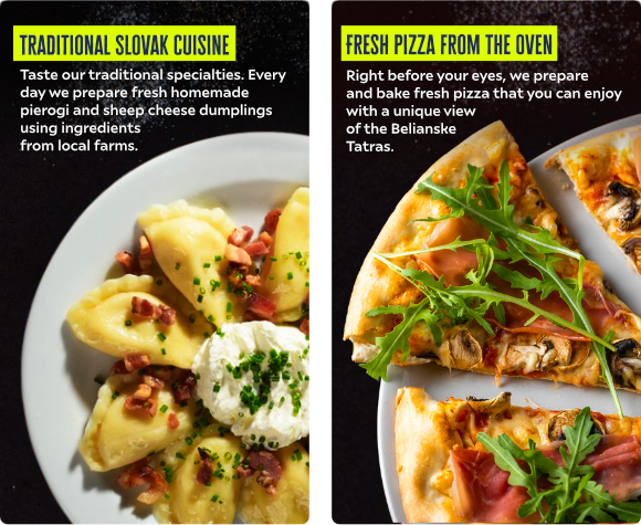 The main idea behind the design was to provide a view of the Belianske Tatras from all key places: from the top of the hill, from within the restaurant and from the outside terraces.