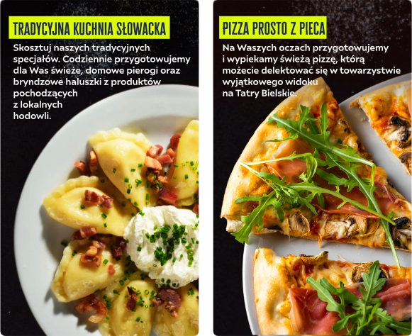 Codziennie przygotowujemy świeże smakołyki z lokalnych składników. Czy znacie lepszy smak niż świeże owoce leśne? Produkty z mleka owiec i krów pasących się na górskich łąkach, domowe mięso, to wszystko przyprawione ziołami, które codziennie są pokropione rosą, a górskie słońce nadaje im pełny smak i aromat?